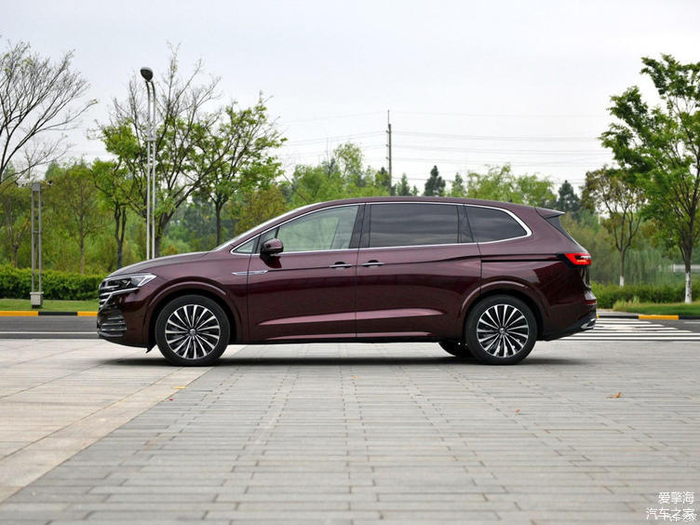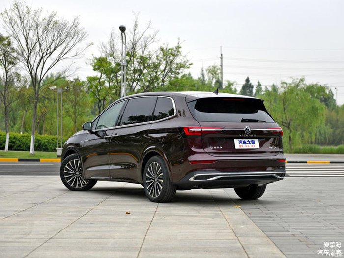再看威然。说实话,要不是它比M8还长了将近200mm的车身,我真不觉得这是一台MPV。威然的整体视觉效果并没有像M8那样“贴近地面”,而且整车造型比较圆润,线条也更加硬朗,这更像是一台SUV的设计手法。不过,这样的设计也确实让威然成为一种MPV当中较为时尚、动感的那一款。另外即便挡上车标,你也能轻易识别出,这是一台大众。