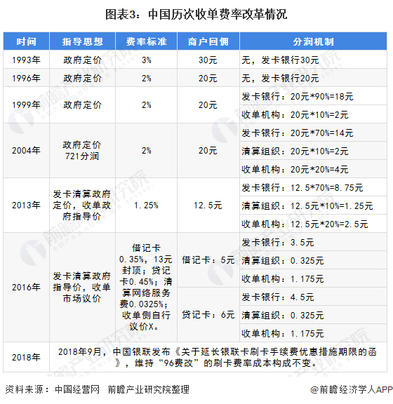 国际上的收单业务发展模式有两种:市场主导型和政府主导型,我国商户收单业务模式以政府主导型为主。自1993年起,国家根据市场变化不断完善商户费率管理制度,商户平均费率水平从最初的3%下降到目前的0.5%左右,整体降幅达到500%,市场实际费率则更低,在全球商户收单市场处于较低水平。2018年9月,中国银联发布《关于延长银联卡刷卡手续费优惠措施期限的函》,维持“96费改”的刷卡费率成本构成不变。