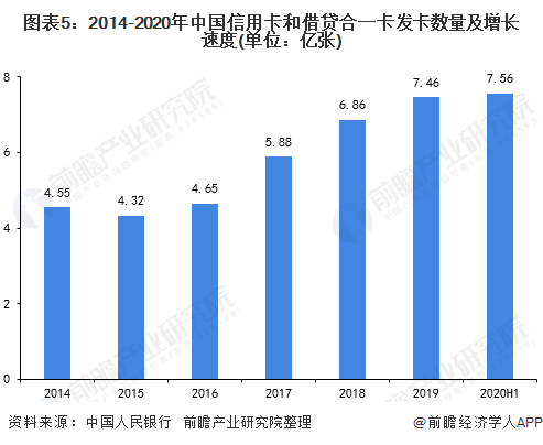 近年来,我国银行卡产业整体保持健康平稳发展态势,发卡端继续加强精细化运营,人均持卡量不断增长,银行卡交易笔数大幅提升。截至2020上半年,全国银行卡在用发卡数量86.58亿张,同比增长8.5%;其中,信用卡和借贷合一卡在用发卡量共计7.56亿张。持续稳定增长的发卡数量为我国第三方支付银行卡收单行业发展提供了坚实的基础。