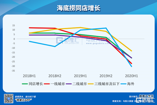 导致海底捞翻台率下降的主要来源是一线和二线门店,2019年上半年一线城市是4.8,全年是4.7,这意味着下半年可能只有4.6,二线城市上半年是5,全年是4.9,下半年估计只有4.8左右。
