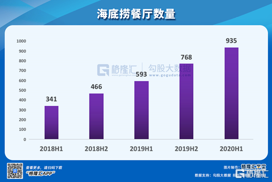 2020年撞上疫情黑天鹅,但也没能阻挡海底捞开店的步伐,到2020年6月底,这个数字成了935家,依然几乎是一天一家的节奏。年底走到1050家以上,看来不是梦。