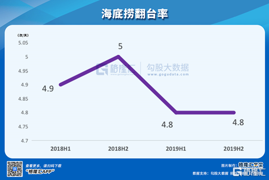 2019年海底捞的翻台率是4.8,较2018年下降了0.2。