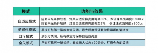 智能系统拥有全开模式、多媒体教学模式、自习模式、全关模式、智能消杀模式等多种模式,可根据不同教学场景需要切换到对应的照明模式,提高教学管理的质量。