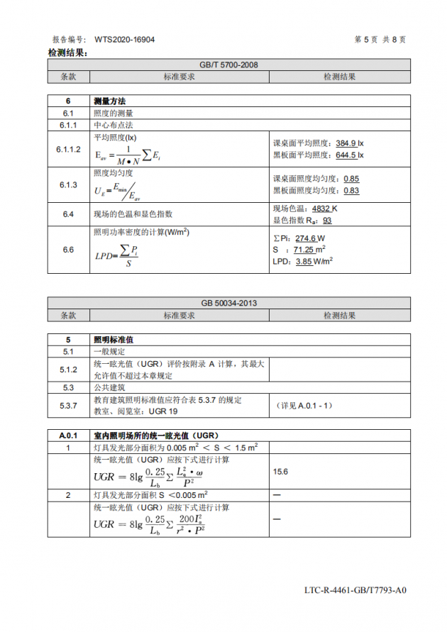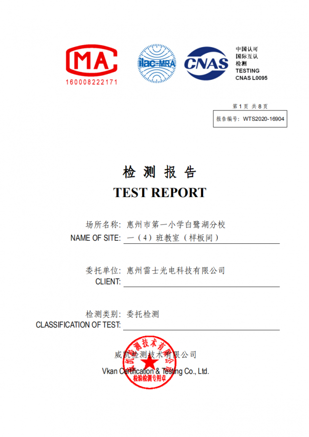 在教室照明改造完成后,邀请第三方检测机构进行现场测试,照明指标均满足国标,并达到理想设计值,充分证明学生和老师可以在健康的照明环境里教学和学习。