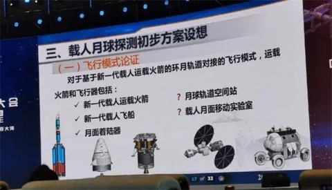 在今年的航天大会展出的PPT上,登月方案中已经没有了长征九号的身影,只剩下新一代载人运载火箭。