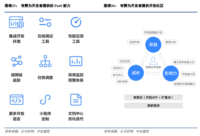 1)意识到明确产业趋势并较早投入到PaaS平台开发和开放生态建设的垂直行业云应用服务龙头厂商,代表公司如中国有赞、明源云、广联达,构建了较为强大的PaaS平台能力,拥有逐步完善的SaaS产品和其他企业级服务,为垂直行业客户提供端到端的解决方案能力,在传统行业实现数字化转型过程中获得高增长。