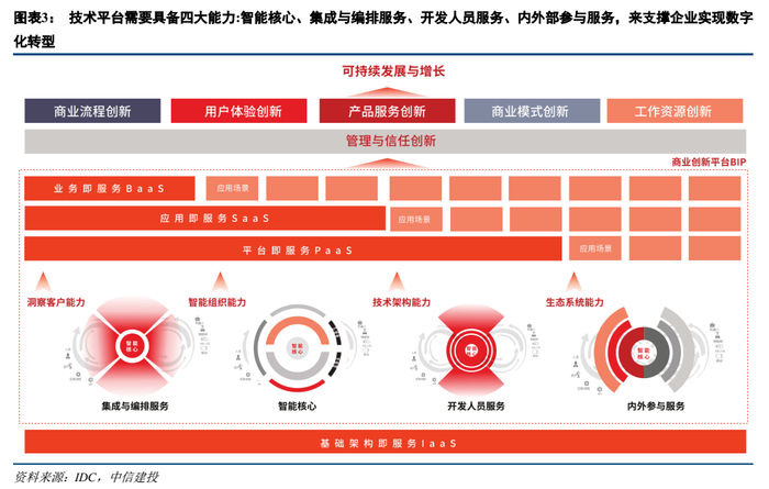 1、大中型企业数字化转型需要强大PaaS能力支撑,国内PaaS平台进入快速发展期,应用开发平台和智能化能力成为重点