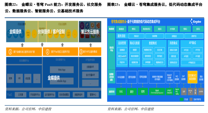 3、为企业打造完善端到端解决方案,通用管理软件平台厂商和垂直行业SaaS龙头进一步打造PaaS核心能力
