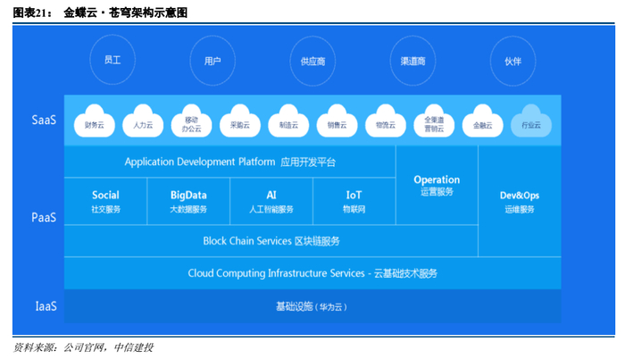 2)中大型客户较多,技术底蕴和平台产品丰富的平台型云计算公司:如阿里云、腾讯云等云计算巨头,用友网络、金蝶国际等PaaS+企业管理平台提供商,面向各行各业客户提供底层平台+解决方案,未来将在大中型企业数字化转型过程中充分受益。