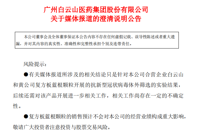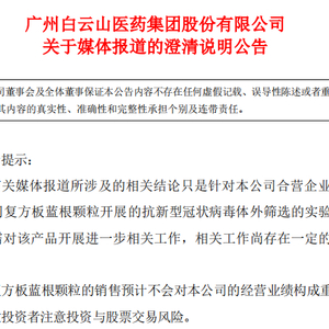原标题:钟南山“点名”板蓝根,公司市值飙升50亿,刚刚,白云山澄清了……