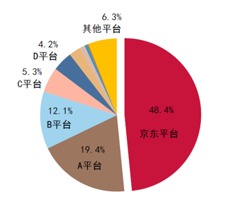 在此背景下,京东的市场份额较去年同期提升了6%,继续领跑全渠道。