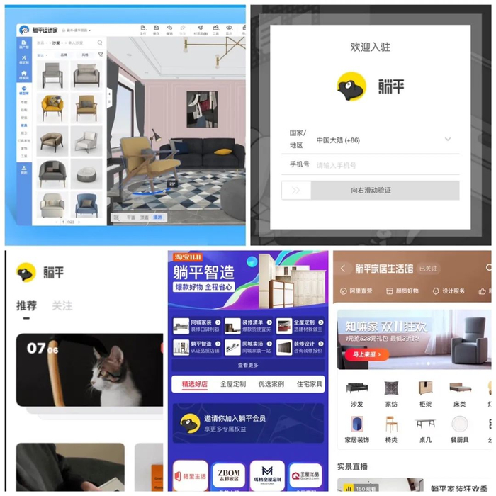 躺平的一系列平台,分别针对消费者、设计师、品牌商家、生产工厂等对象,承担不同任务。虽然躺平的各个业务看起来相互独立,但底层技术和用户数据共享,串起了家装行业的链条。