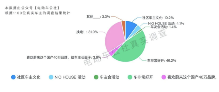 早先电动车公社也做过1106位真实车主的调研,发现其中31%的车主都是因为换电选择的这个品牌,这一点在意料之外,但也在情理之中。