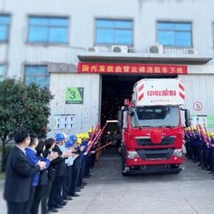 国内首款曲臂云梯消防车在中联重科下线
