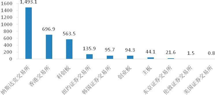科创板开市以来全球主要市场生物医药企业IPO融资额