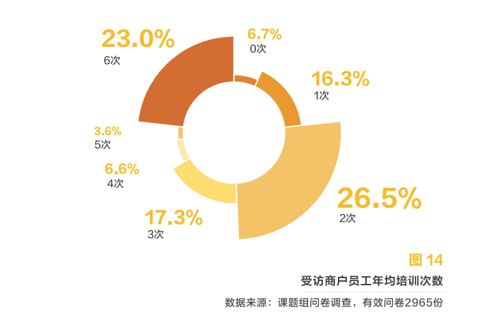 3. 从业者职业化:超过50%门店每年定期培训3次以上