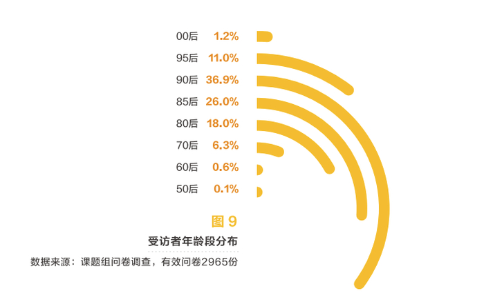 在近3000名受访者中,40 岁以下群体是“主力军”,占比超过九成,其中90后、95 后群体的占比接近 48%。从性别分布看,女性占行业从业者的58.2%。