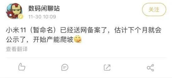 随着2020年即将走向尾声,按照惯例,新年的第一季度小米几乎一定会发布一款旗舰手机,今年也不例外。前段时间,数码评测博主@数码闲聊站称,小米为了抢占首发骁龙888,不排除提前发布小米11的可能,目前小米11已经送网办备案,估计会率先公布搭载的配置信息。