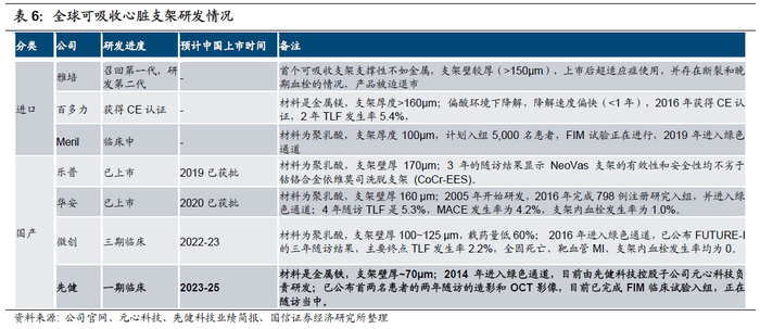 3)先健的铁基支架可吸收,是全球最薄的心脏支架之一,可在微环境中快速降解;