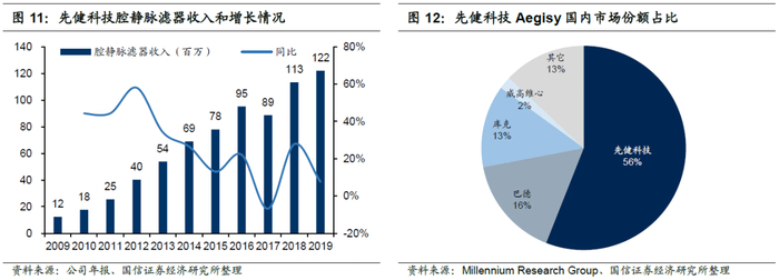 2)先健腔静脉滤器为国内第一品牌,国内市占率达56%