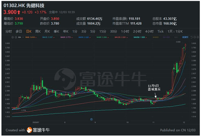 11月5日国家公布医用集采后,医疗器械企业普跌,然而先健科技却开始一轮新涨势,月内涨超84%。11月24日,高瓴资本和德福资本通过宗交易方式入资先健科技,成为公司重要股东。