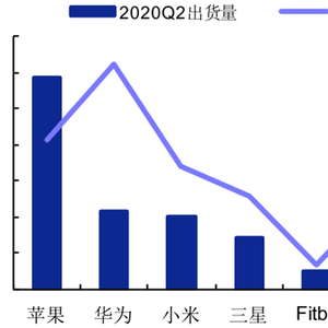 在市占率方面,苹果的市场占有率保持榜首且继续攀升,由 2019 年 Q2 的 31.1%增至 2020年 Q2 的 34.2%;华为的市场占有率也出现了较为明显的增长,由2019 年 Q2 的 9.1%增至2020 年 Q2 的 12.6%;小米、三星的市场占有率基本保持稳定;Fitbit 和其它公司的市场占率下滑趋势较为明显,其中 Fitbit 由 2019 年 Q2 的 4.6%降至 2020 年 Q2 的 2.9%,其它公司由 2019 年 Q2 的 34%降至 2020 年 Q2 的 30.3%。