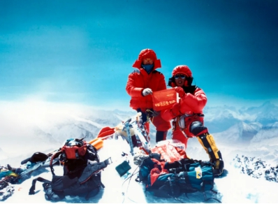 1998年,中国登山队次洛身穿波司登羽绒服登顶珠峰