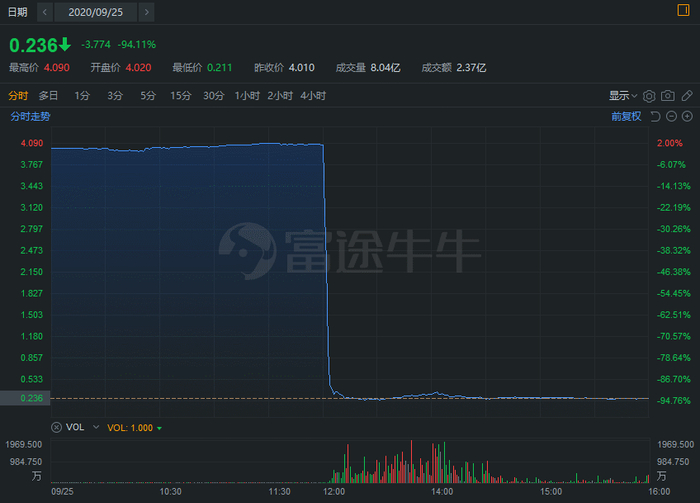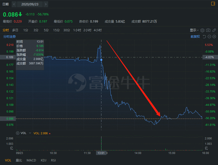 暴跌原因:股价常年低位,遭主要经纪商大抛售,股价放量闪崩