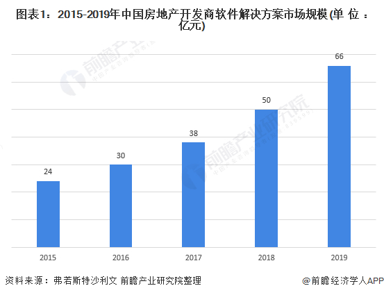 中国的房地产开发商是房地产行业的驱动力。房地产开发商于各种业务场景下的业务经营十分复杂,促使开发商通过智能软件解决方案在线上将业务流程持续数字化、精简化和最优化。近年来,中国房地产开发商软件解决方案市场实现了大幅增长,由2015年约24亿元大幅增长至2019年的66亿元,年复合增长率为28.78%。