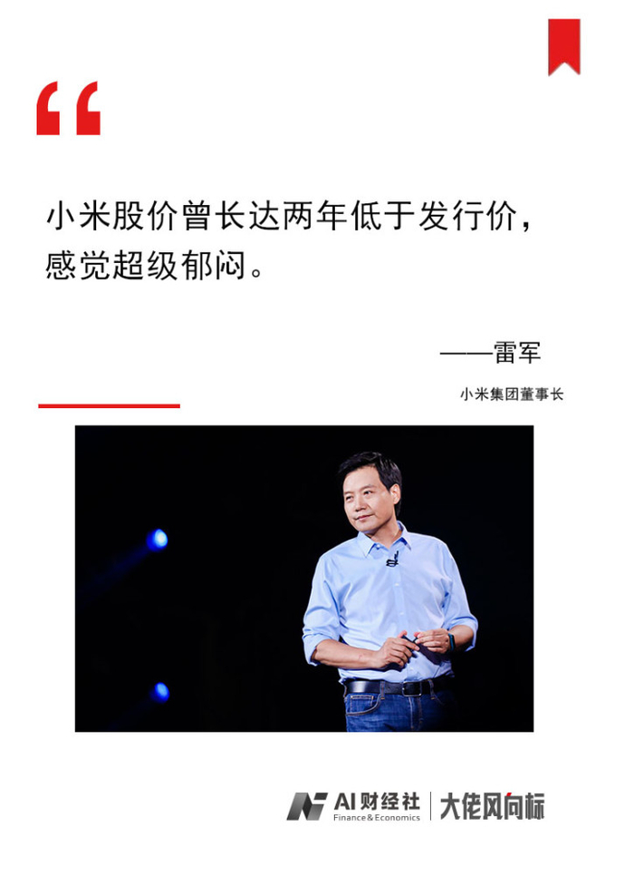 原标题:大佬风向标:雷军:小米股价长达两年低于发行价,感到超级郁闷 来源:AI财经社