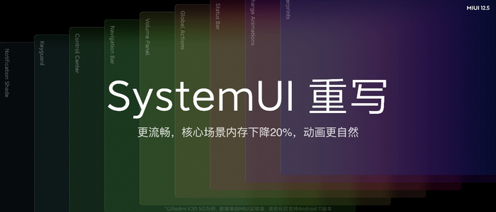 全新的MIUI12.5在应用基础体验方面进行了重大升级,对应用的内存、性能、功耗等方面进行了全面优化。通过对SYSTEM UI重写,达到核心场景内存下降20%。其中系统应用后台内存占用平均下降32%;系统应用功耗平均下降17%;超级壁纸功耗平均下降40%,MIUI12.5让手机系统更轻更快更省电。