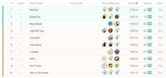 Kaggle竞赛 Google Football 排行榜前十名