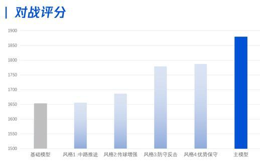 内部能力评分系统显示,加入对手池训练以后的主模型,可以在基础模型的基础上提高200分,比最强的风格化打法高80分。