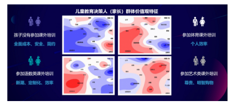 没有调查就没有发言权,同样,如果没有了解你的消费者,所有的营销工作都是缺乏依据的,是盲目的。基于亿级真人用户基数和2000+丰富的用户标签,以及跟罗兰贝格、央视市场研究(CTR)等知名咨询、研究公司的合作,网易云商通过消费价值观模型,对家长这一决策群体进行分群洞察,发现选择不同课程类型的家长,背后有着截然不同的价值观: