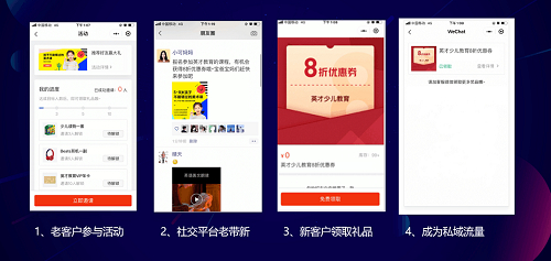 不止于此,网易云商还为教育机构提供“裂变能力”,引发滚雪球式流量效应。K12课外辅导机构高起点培优的李老师介绍说,“教培机构经常会搞老带新裂变活动,以往这样的裂变活动,需要发动市场、设计、产品、研发一起参与。现在通过网易云商,可以直接在后台轻松配置活动规则,生成邀请海报,进行扩散,裂变活动带来的线索也可以无缝沉淀,整个营销获客和转化的链路非常顺畅。”