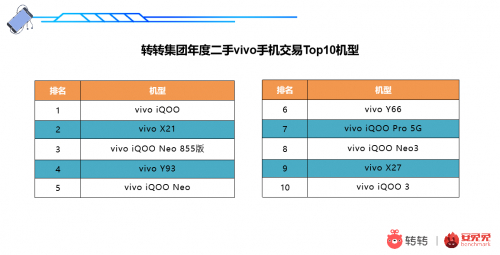 2020年,vivo的“逆袭”不得不提iQOO。安兔兔安卓手机年度性能榜上,iQOO有3款手机上榜;性价比榜单中,vivo也依靠iQOO Z1和iQOO Neo3拿下两席;二手市场,转转集团年度vivo手机交易榜Top10机型中,有6款来自iQOO,其中vivo iQOO Neo3成为最大黑马。