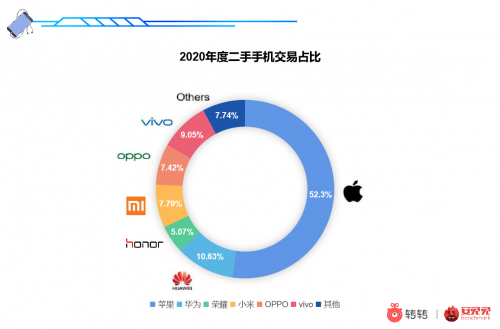 二手市场,2020年以来二手手机的交易量持续走高。其中苹果iPhone占据半壁江山,华为、vivo紧随其后,小米仍是性价比之王。