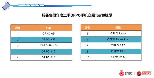 安兔兔年度榜单中,OPPO鲜有进入Top10的机型;二手市场,OPPO手机的年度总交易量排名第五;转转集团安卓手机年度交易榜Top10中,OPPO A5上榜。目前,转转严选95新OPPO A5起售价为458元。