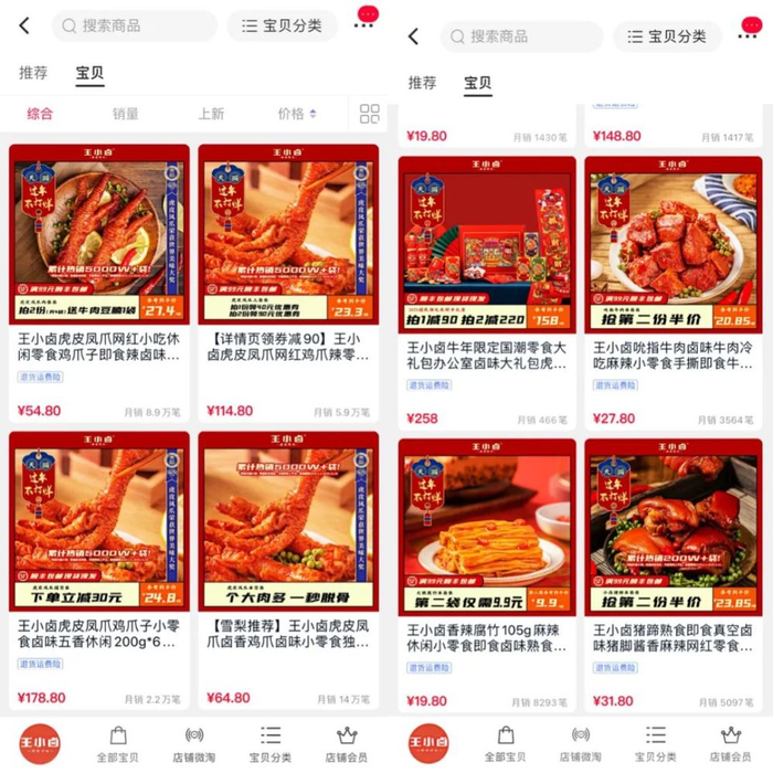 过去20年,绝味、周黑鸭、煌上煌从线下、鸭脖单品跑出来,在卤味休闲零食中形成头部品牌效应,是王小卤“卤味”横向生长的劲敌。
