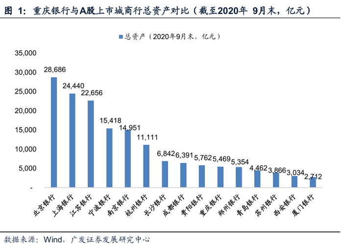 重庆银行成立于1996年,由重庆市原37家城市合作信用社和1家城市信用合作社联合社整合改组成立。2013年11月在香港联交所主板成功挂牌上市,是全国第一家在香港上市的内地城商行。自成立以来,重庆银行在中国经济快速发展和西部大开发的经济大背景下,依托国家政策优势和重庆市良好的经济金融环境,立足重庆,并对四川省、陕西省和贵州省三个西部省份形成辐射,不断实现跨越式发展,并逐渐成为了中国西部地区领先的综合性城市商业银行。截至2020年9月末,重庆银行资产规模5469亿元,在A股上市城商行中排名第10位,在重庆市本地商业银行(法人口径)中仅次于 渝农商行 。