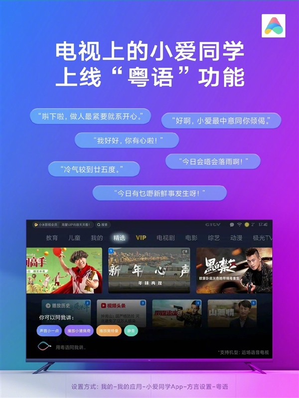 小米电视小爱同学升级:粤语功能上线