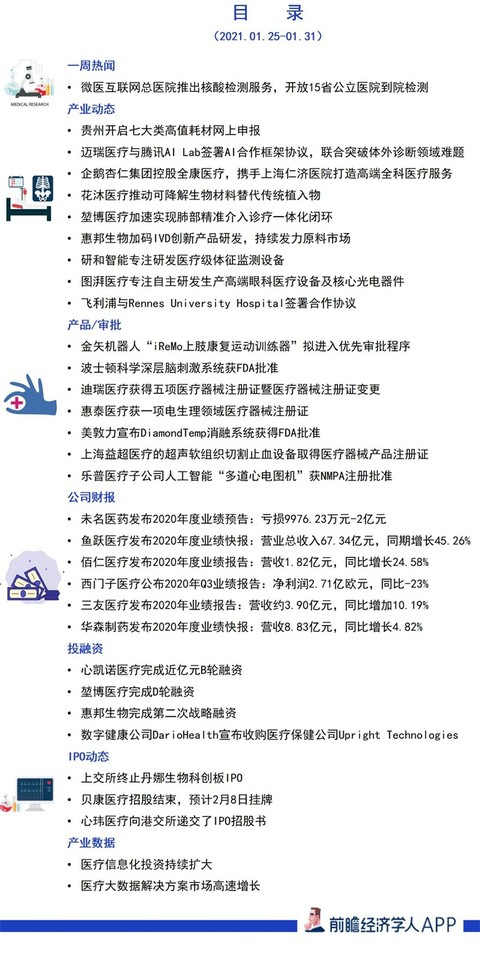 前瞻医疗器械产业全球周报第63期:迈瑞医疗与腾讯AI Lab合作,联合突破体外诊断领域难题