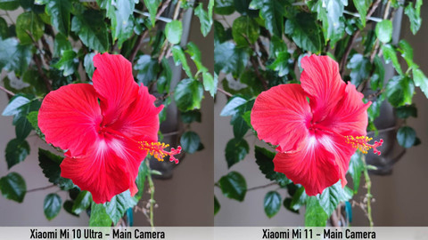 而在这组以花朵作为被拍摄主体的照片对比中,小米10至尊版和小米11雷军签名版之间对于颜色的把控而言,区别继续被保留了下来。小米10至尊版拍摄的花朵无论是花瓣还是花蕊,颜色方面都比较深,而小米11雷军签名版拍摄的花朵和花蕊颜色都比较浅。小米10至尊版拍摄的花瓣颜色深,导致效果看上去十分老气。而小米11雷军签名版拍摄的花瓣亮度浅,看起来更加粉嫩。
