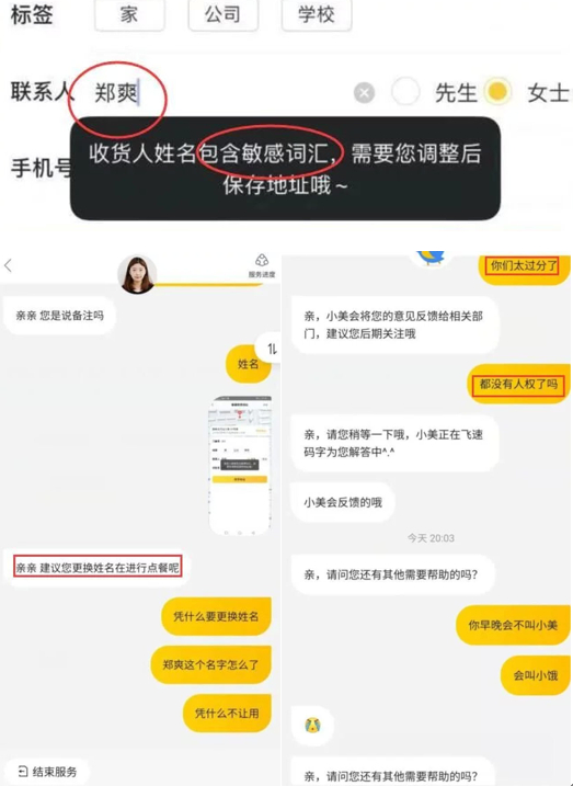 事实上外卖平台直接将郑爽的名字设置成敏感词汇,让消费者必须修改名字才能点餐的行为,估计是想规避郑爽引起的风险。