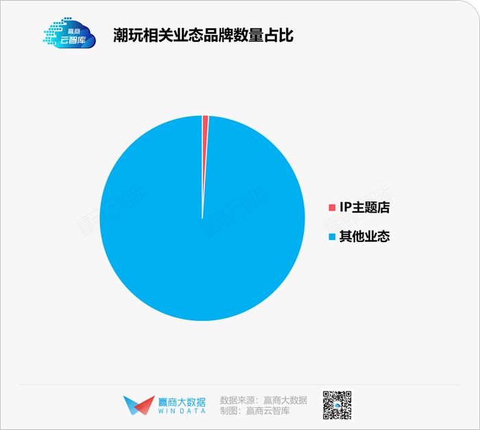 但据赢商大数据监测,目前潮玩相关业态在购物中心的占比不足1%。行业成熟度不足、集中度低。(统计范围:21个重点城市5万平方米以上购物中心)