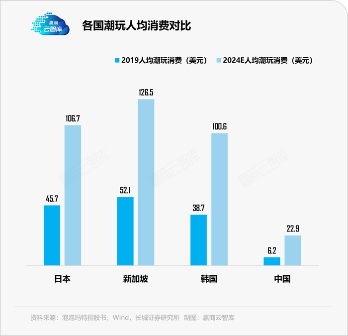 另一方面,2019年中国人均潮玩消费仅为6.2美元,同期日本、新加坡、韩国分别是中国的7、8和6倍。这一数据反映,中国消费者潮玩衍生品的消费习惯还有待继续养成。