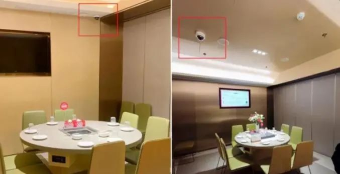 此前曾有调查称,在30家火锅店中,有19家在包间装有摄像头;在14家非火锅店中,也有2家的包间装有摄像头。