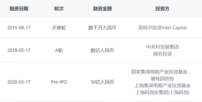 投资方包括英特尔、国际集成电路产业基金、上海创投集团等。最后一轮融资估值显示,这家企业估值已经达到了 500 亿元,目前该企业计划在科创板 IPO。