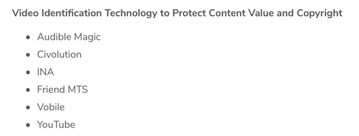 时至今日,阜博集团已经成为全球领先的IP保护SaaS供应商。其客户包括迪士尼、华纳兄弟、NBC环球、维亚康姆CBS、狮门影业、Discovery、HBO等头部主流内容媒体,也是目前全球唯一同时与YouTube、Facebook、Instagram及SoundCloud四大网络内容平台合作并符合要求的第三方版权管理供应商。