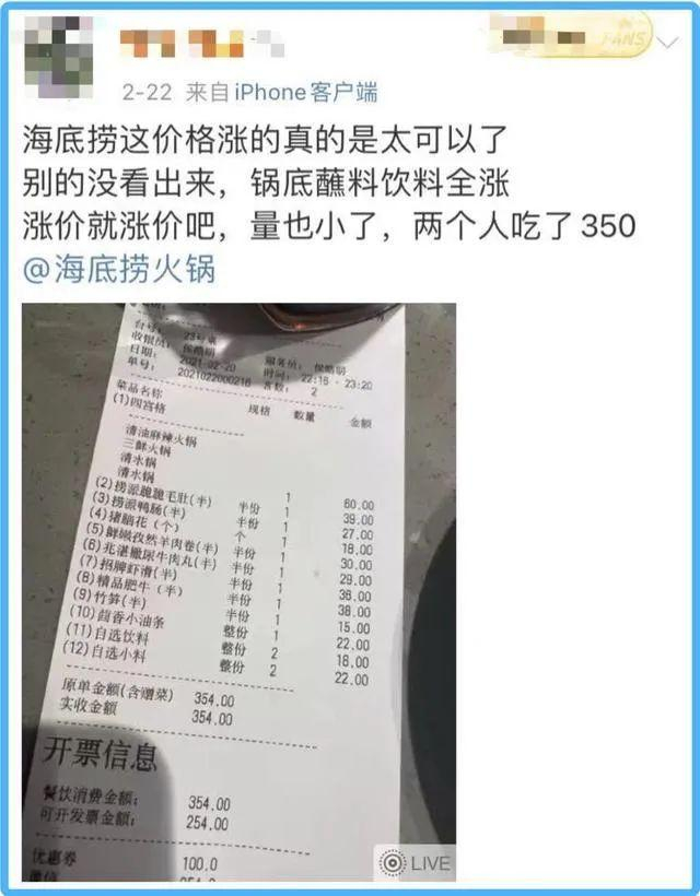 然而,不是不报,时候未到,2020年海底捞净利润暴跌90%,从23.47亿元下降到2.35亿元。受疫情影响,海底捞收入下降不少,于是就采取了涨价的方式,受到不少用户的批评,上半年人均消费从上年同期的104.4元涨到了112.8元。虽然疫情对餐饮业的冲击确实不小,但海底捞的翻台率从2018年的5次/天,降到了2020年的3.3次/天。下降速度太快,这应该不只是疫情的原因,更多是用户对海底捞失去了信赖。